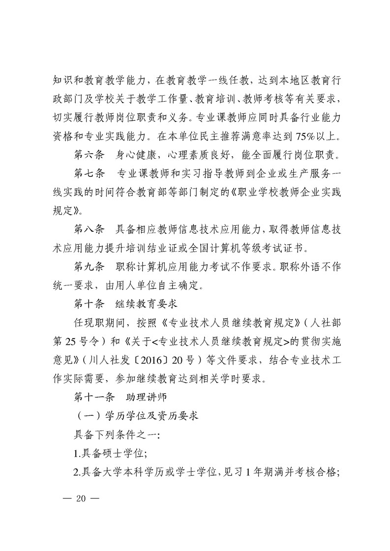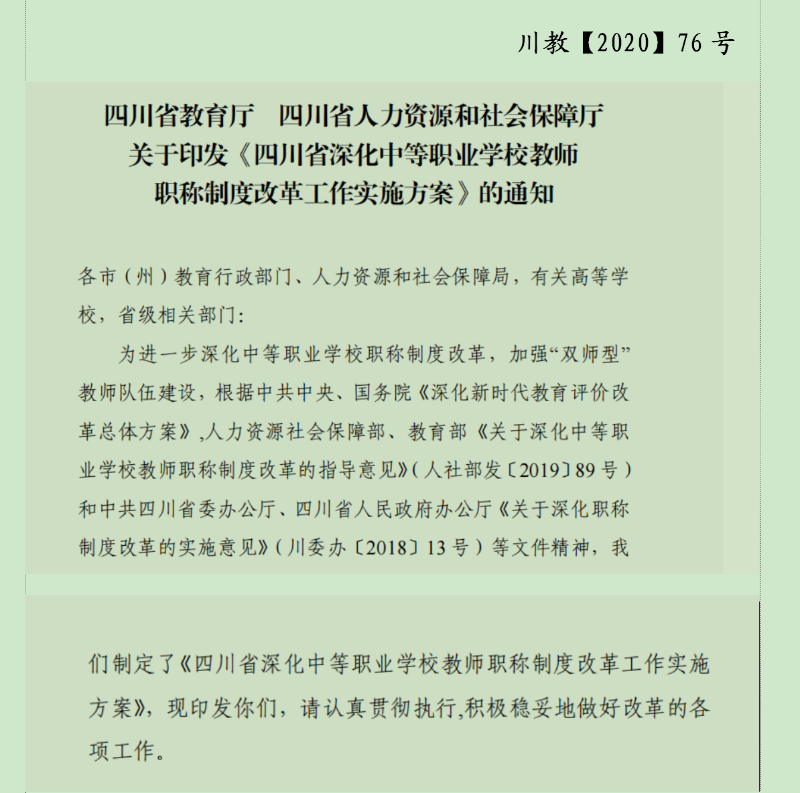 川教【2020】76号 关于印发《四川省深化中等职业学校教师职称制度改革工作实施方案》的通知
